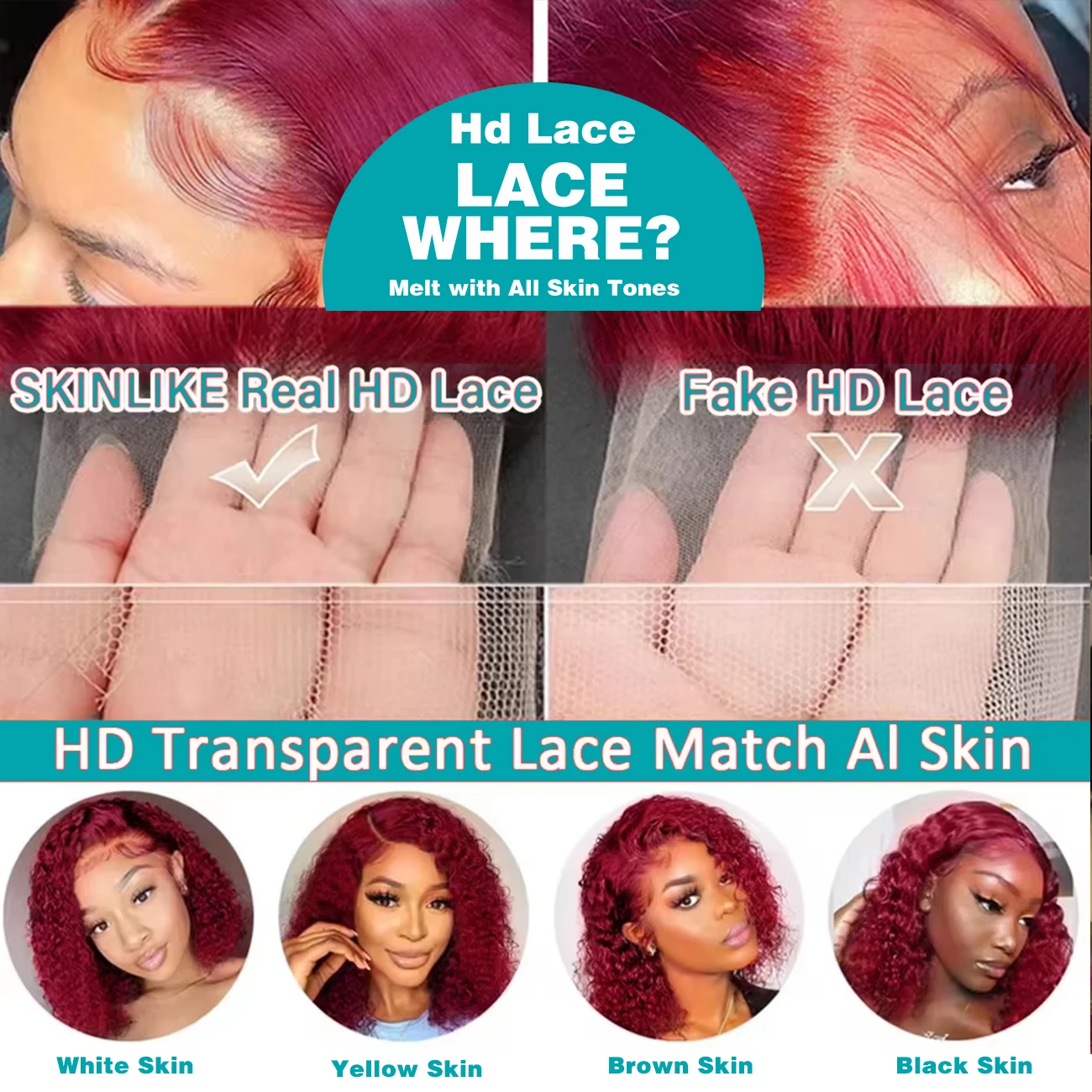 Lace Color: HD transparent lace, melt down perfectly, match all skins