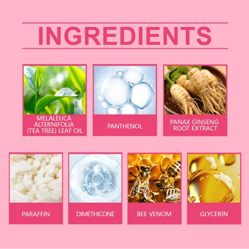 | Composition | Tea leaf oil, panthenol, ginseng root extract |
