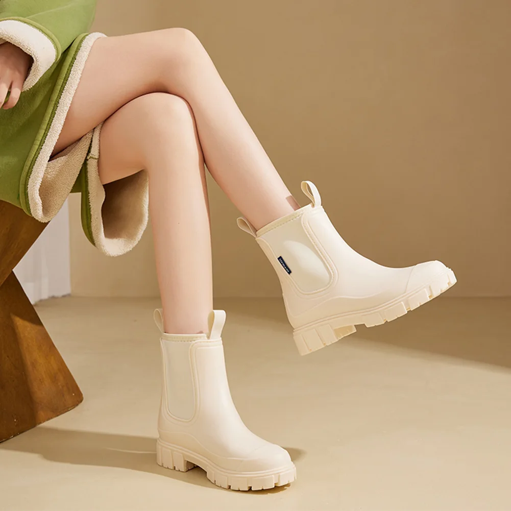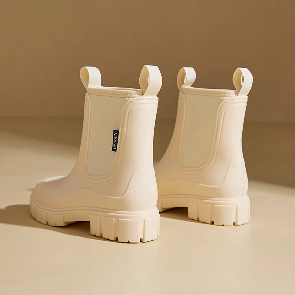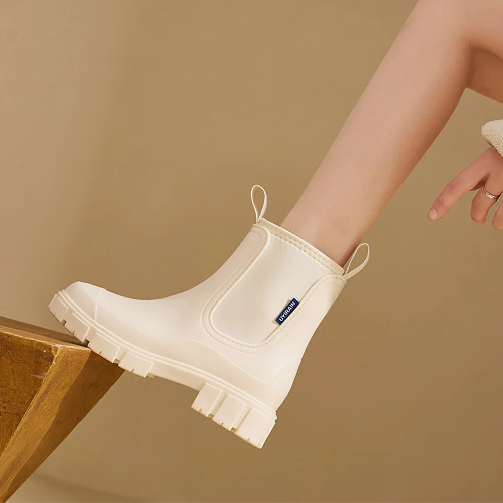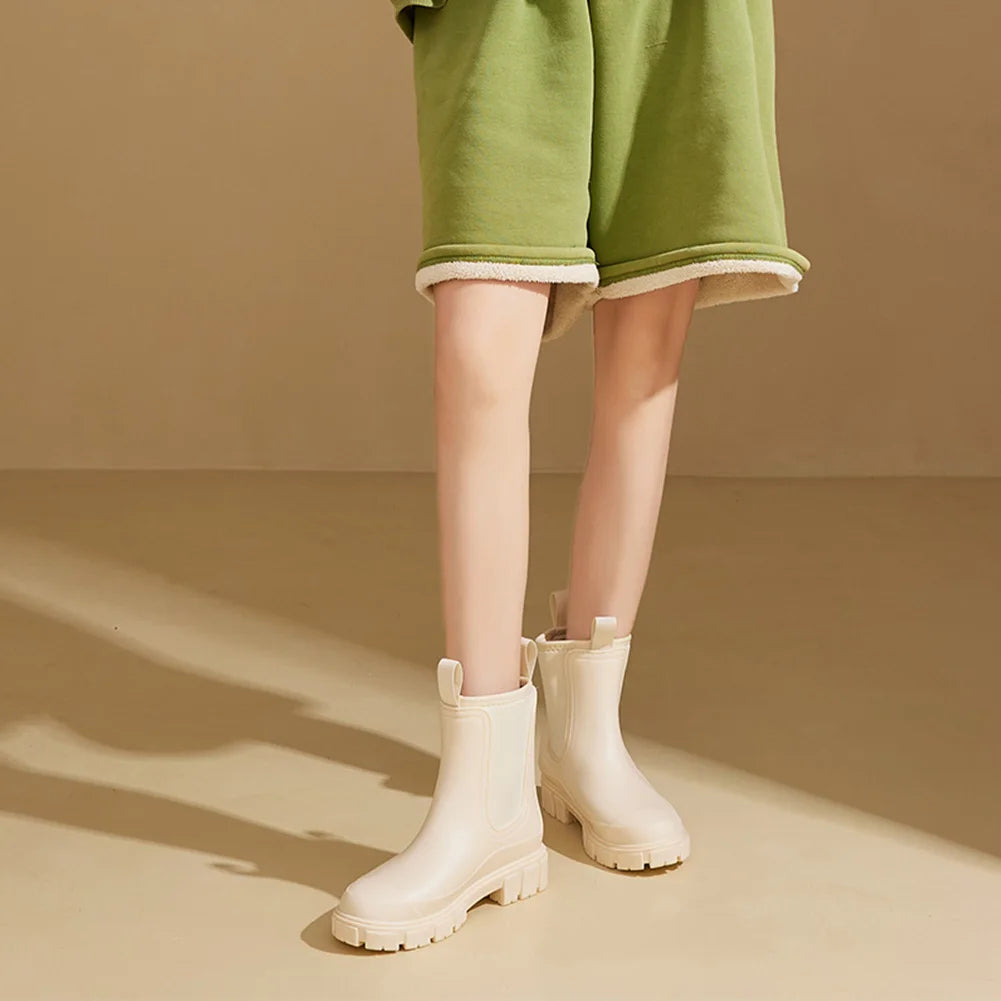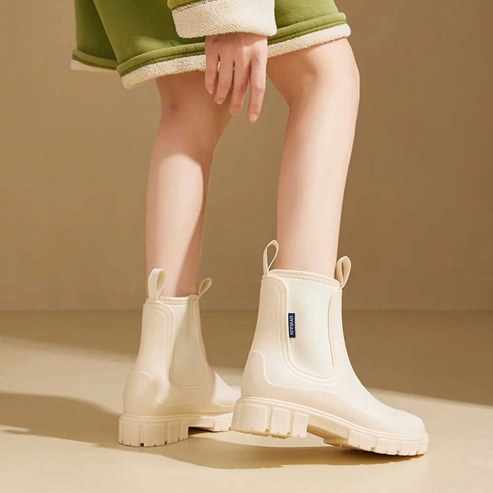 3. Stylish Minimalist Design: With a sleek, minimalist design, these ankle rain boots easily complement a variety of outfits, highlighting your personal fashion sense.